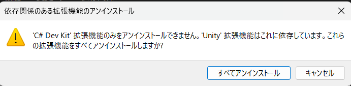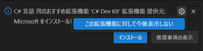 もしこのようなC#DevKitの表示が出てくれば、「今後表示しない」「すべて無視します」などのボタンを押します。
