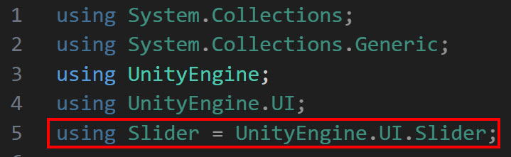 using Slider = UnityEngine.UI.Slider; |